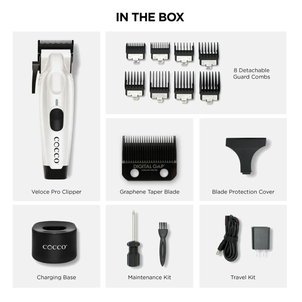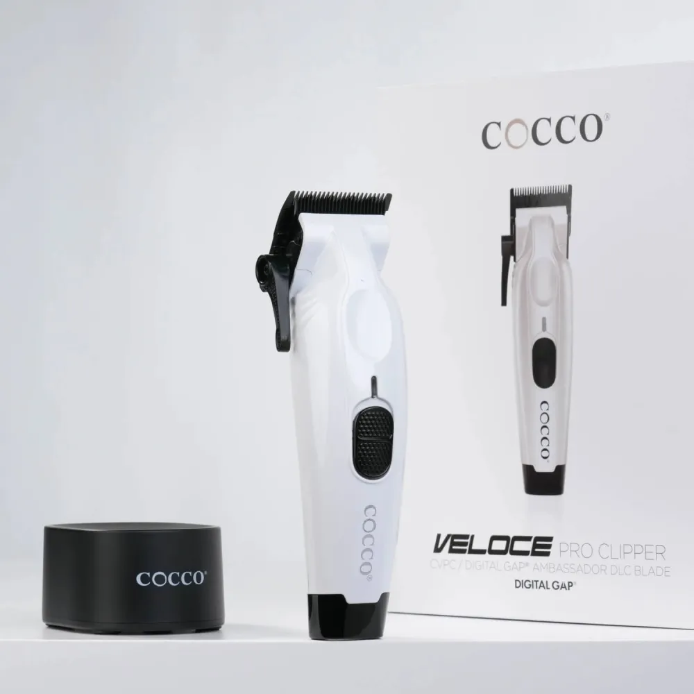 The Cocco Veloce Clipper in Pearl White combines high-performance cutting with a clean, eye-catching finish. Designed for professional barbers and stylists, it offers the same trusted Hyper Veloce-level power, precision blade technology, and smooth operation, making it perfect for fades, blending, and detailed cutting work.