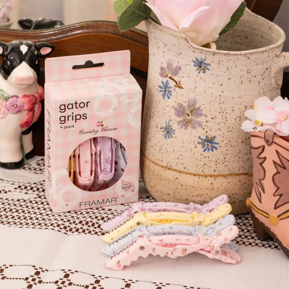Framar Country Charm Gator Grips bring a little countryside character to your colour station. Designed for serious hold with a soft, floral-inspired finish, these rubberized sectioning clips keep hair exactly where you put it, without slipping, sliding, or drama.