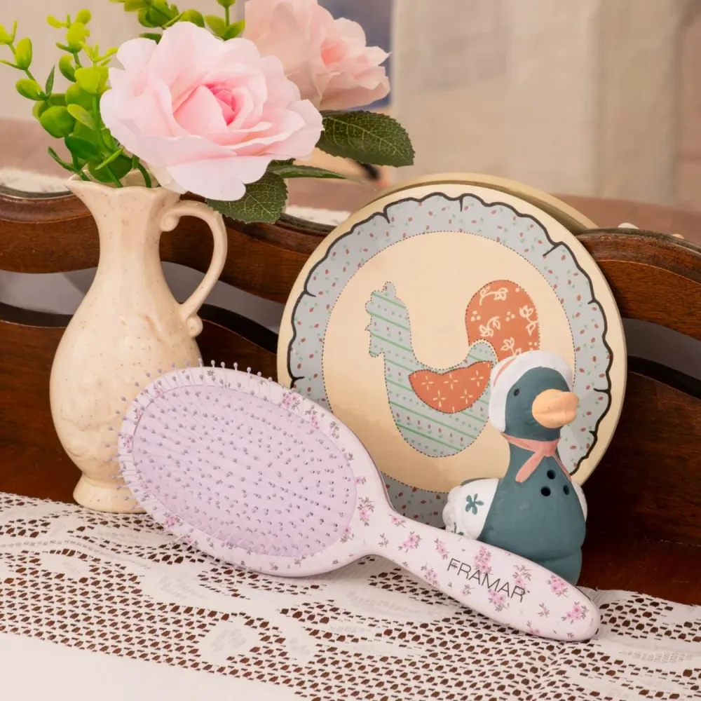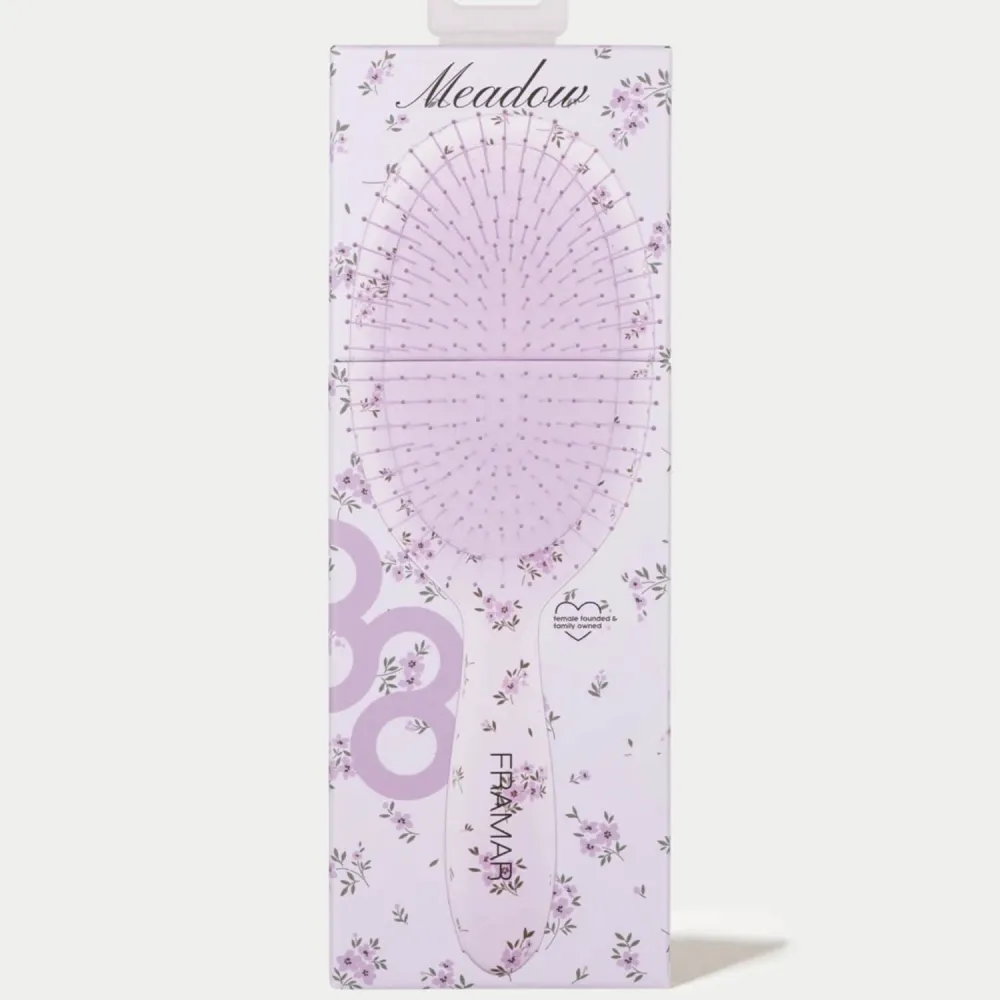 Framar Meadow Detangle Brush pairs soft purple florals with serious detangling power. It is gentle on knots but firm enough to glide through stubborn tangles without turning brushing into a battle.