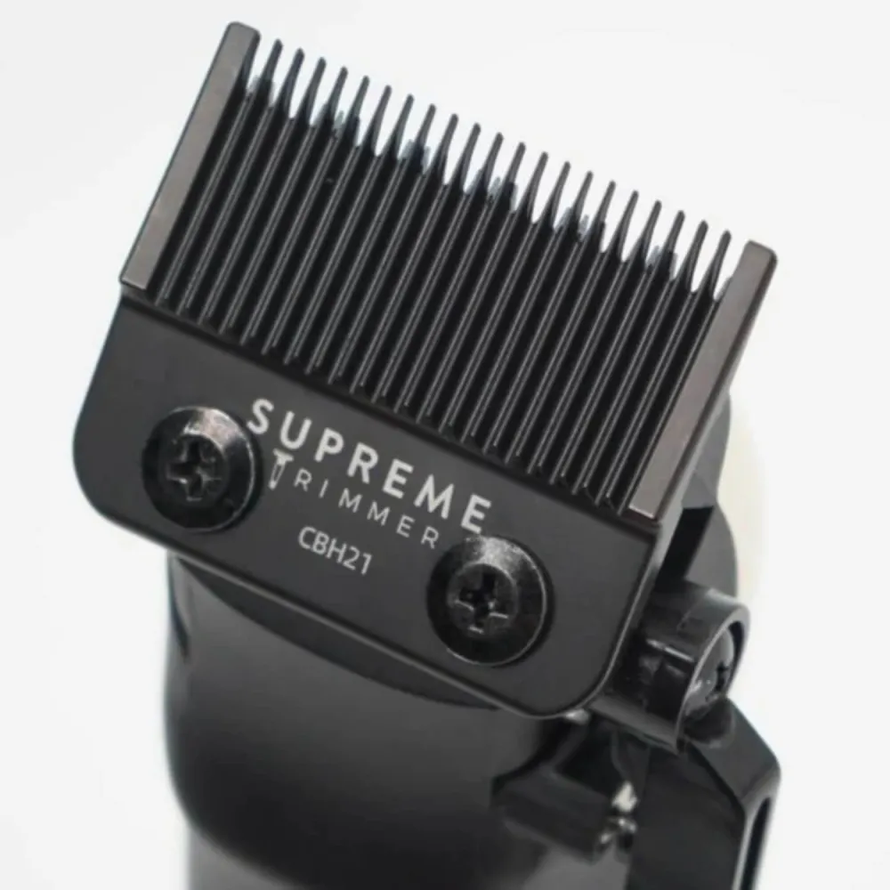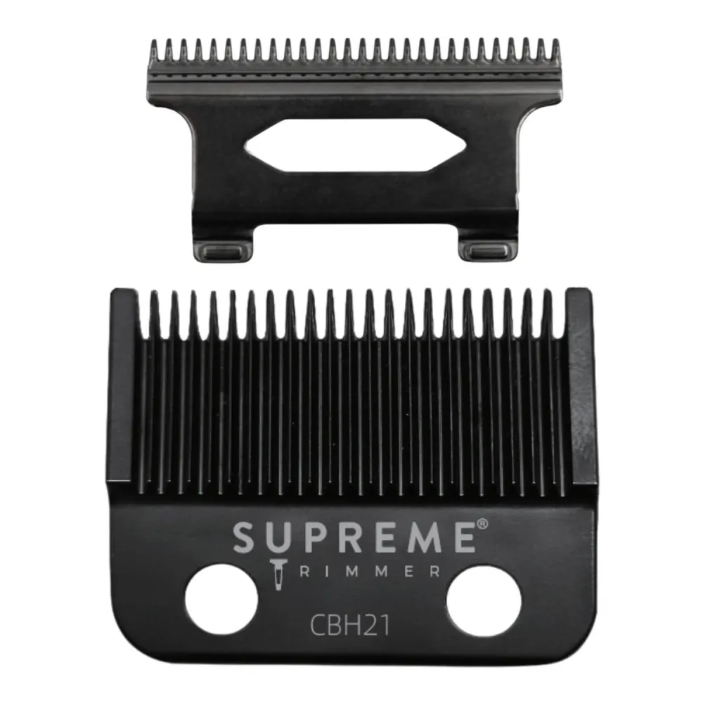 The Supreme Trimmer Tade Blade for DarkStar Clipper (CBH21) is a hybrid blade designed to combine the precision of a fade blade with the smooth blending capabilities of a taper blade. This versatile design allows barbers to switch effortlessly between detailed fading and bulk hair removal without changing tools, delivering consistent, professional results.