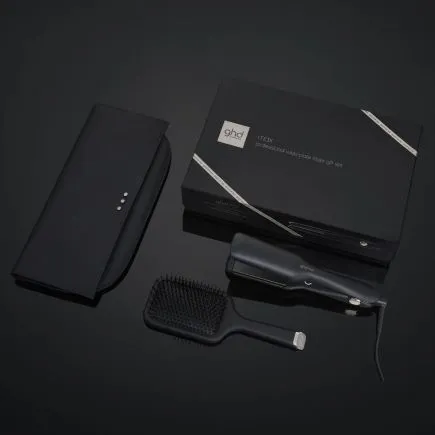 Achieve sleek, professional hairstyles effortlessly with the GHD Max Wide Plate Styler Gift Set. Featuring the wide plate styler, paddle brush, and a heat-resistant bag, this set is ideal for long, thick, and curly hair.