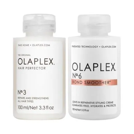 This set includes:Olaplex No.3 Hair Perfector 100mlMore than a hair treatment, the Olaplex No. 3 Hair Perfector is a global bestseller that will provide incomparable results. This silky formula will maintain strength between salon appointments and reverse any form of damage to the hair, whether it’s caused by excessive heat-styling, chemicals from dying or everyday wear-and-tear. Specifically designed for at-home use, our patented technology relinks broken disulfide bonds that fits to any hair type. When used once a week either as a pre-shampoo or overnight treatment, this small and chic bottle will preserve a natural shine with real, long-lasting effects. Add in the Olaplex No. 4 Bond Maintenance Shampoo and Olaplex No.5 Bond Maintenance Conditioner, this creates the recipe for a hair-care routine that matches no other.Olaplex No.6 Bond Smoother 100mlHave you noticed that your hair is prone to frizz and dryness? With our distinctive proprietary technique that gives maximum strength, the Olaplex No.6 Bond Smoother will address these concerns. This bottle contains a sulphate-free, vegan leave-in cream that will strengthen, hydrate, and moisturize all hair types, including color-treated and chemically treated hair. This is great for both blow drying and air drying since it speeds up the process without weighing down the hair and leaves it silky. While it may be used on a daily basis, a tiny quantity combed through wet or dry hair beginning at the mid-length is adequate to remove frizz and flyaways for up to 72 hours.